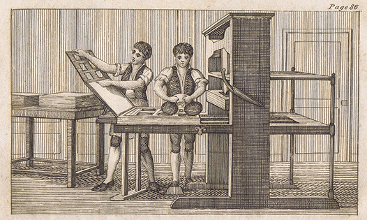 My personal interest in William Parks began many years ago when one of my American clients, who specialises in early Americana, sent me a copy of one of William Parks’ imprints for restoration. Having discovered his Ludlow roots, I decided to reprint the Ludlow Postman on our 1865 Albion press [Fig. 3]. This proved to be more difficult than initially thought, as the paper used for newspapers in the eighteenth century was of very poor quality I could not find a single complete copy that was either in good enough condition to produce a facsimile or was robust enough for the owners to allow out for photographing. As a result, I took the decision to reset all the type and redraw the woodcuts on the heading from the fragments that I had managed to track down. This facsimile copy is now available from The Bindery Shop, 5 Bull Ring, the room right next door to William Parks’ first print shop.